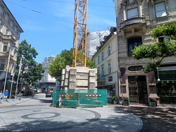 Hintergrund der Baustelle ist der Dachstuhlbrand in der Lichtentaler Straße am 7.12.2024. Für die Instandsetzung des zerstörten Dachstuhls wurde ein Baukran benötigt. Für die folgenden Arbeiten war der Kran jedoch nicht erforderlich und ist schon seit mehreren Monaten unbenutzt. Die Anwohner und Geschäftsleute führten bisher einen aussichtslosen Kampf gegen diesen Kran, da er einerseits ein Verkehrshindernis ist, zum anderen aber auch zu Umsatzeinbußen geführt hat.