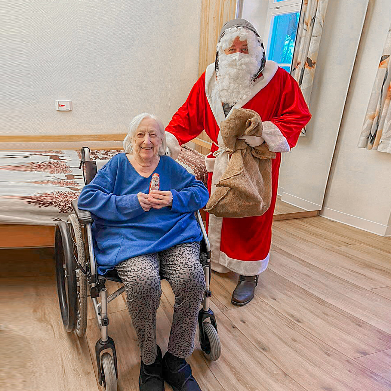 „Für den Nikolaustag hat sich die Leitung des Pflegeheims Schafberg etwas Besonderes einfallen lassen“, erzählt Tommy Schindler. „Jeder Bewohner sollte Besuch vom Nikolaus bekommen und ein kleines Präsent erhalten. Doch leider wurde der Mitarbeiter, der den Job übernehmen sollte, kurzfristig krank. Also übernahm ich die Aufgabe.